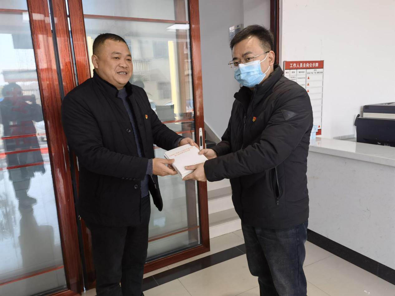 為了解群眾心聲,主動為幫扶對象做實事。會后,支部書記楊濤向橋邊村贈送了80本《中國共產(chǎn)黨第十九屆中央委員會第六次全體會議公報》手冊,幫助橋邊村黨員進一步學(xué)習(xí)十九屆六中全會精神。