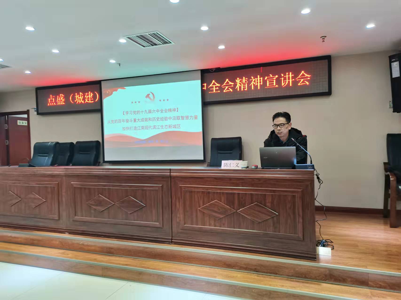 陳仁義以從黨的百年奮斗重大成就和歷史經(jīng)驗中汲取智慧力量,加快打造江南現(xiàn)代濱江生態(tài)新城區(qū)”為題,從我們黨為什么要做關(guān)于黨的百年奮斗歷程的決議、中國共產(chǎn)黨百年奮斗歷程的四個時期、中國共產(chǎn)黨百年奮斗的歷史經(jīng)驗總結(jié)和我們應(yīng)該怎么做四個方面作詳細闡述。號召全體干職工要以十九屆六中精神為指引,解放思想、干在實處、爭當(dāng)表率,切實履行國有企業(yè)的政治責(zé)任、社會責(zé)任和經(jīng)濟責(zé)任。