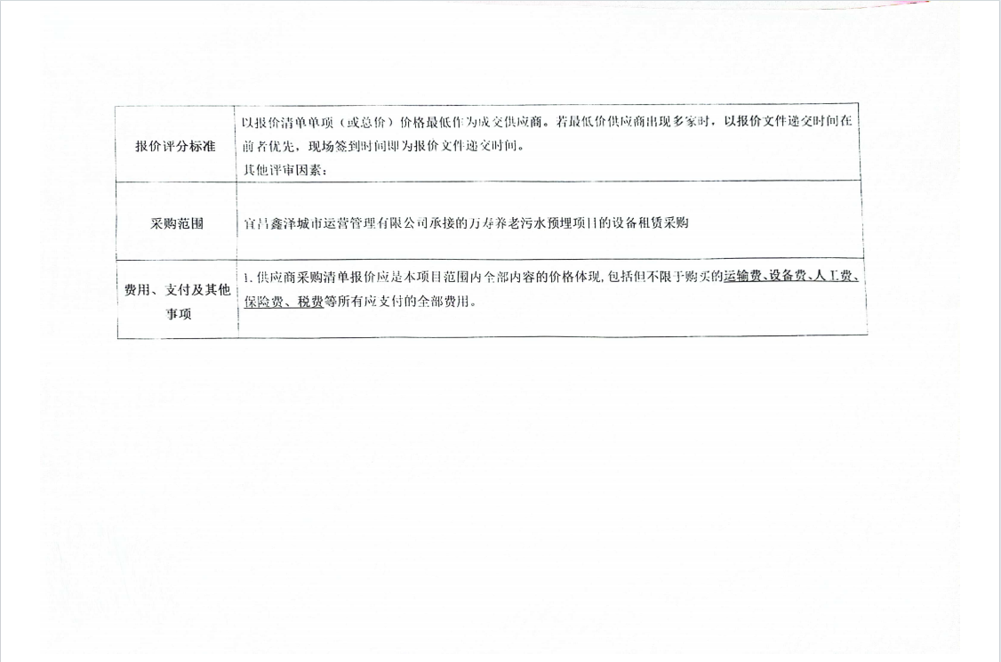 萬壽養(yǎng)老污水預(yù)埋設(shè)備租賃采購詢價公告