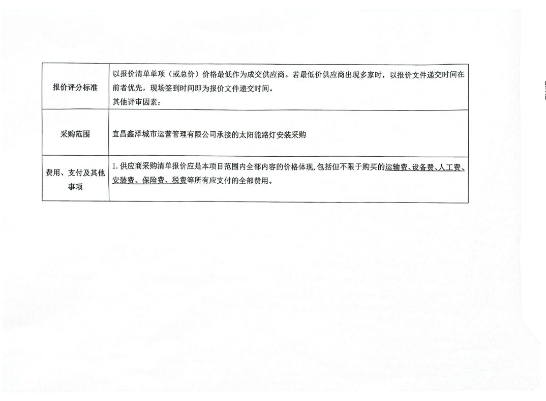 宜昌鑫澤城市運(yùn)營管理有限公司太陽能路燈采購項(xiàng)目詢價公告