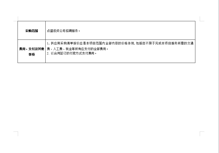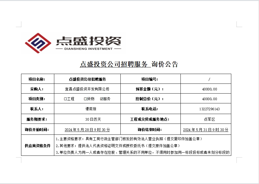 點(diǎn)盛投資公司招聘服務(wù)詢(xún)價(jià)公告