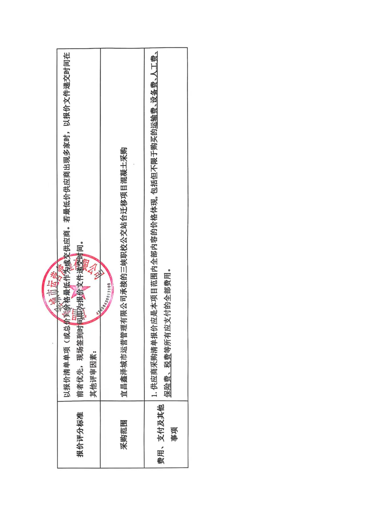 三峽職校公交站臺遷移混凝土采購詢價公告