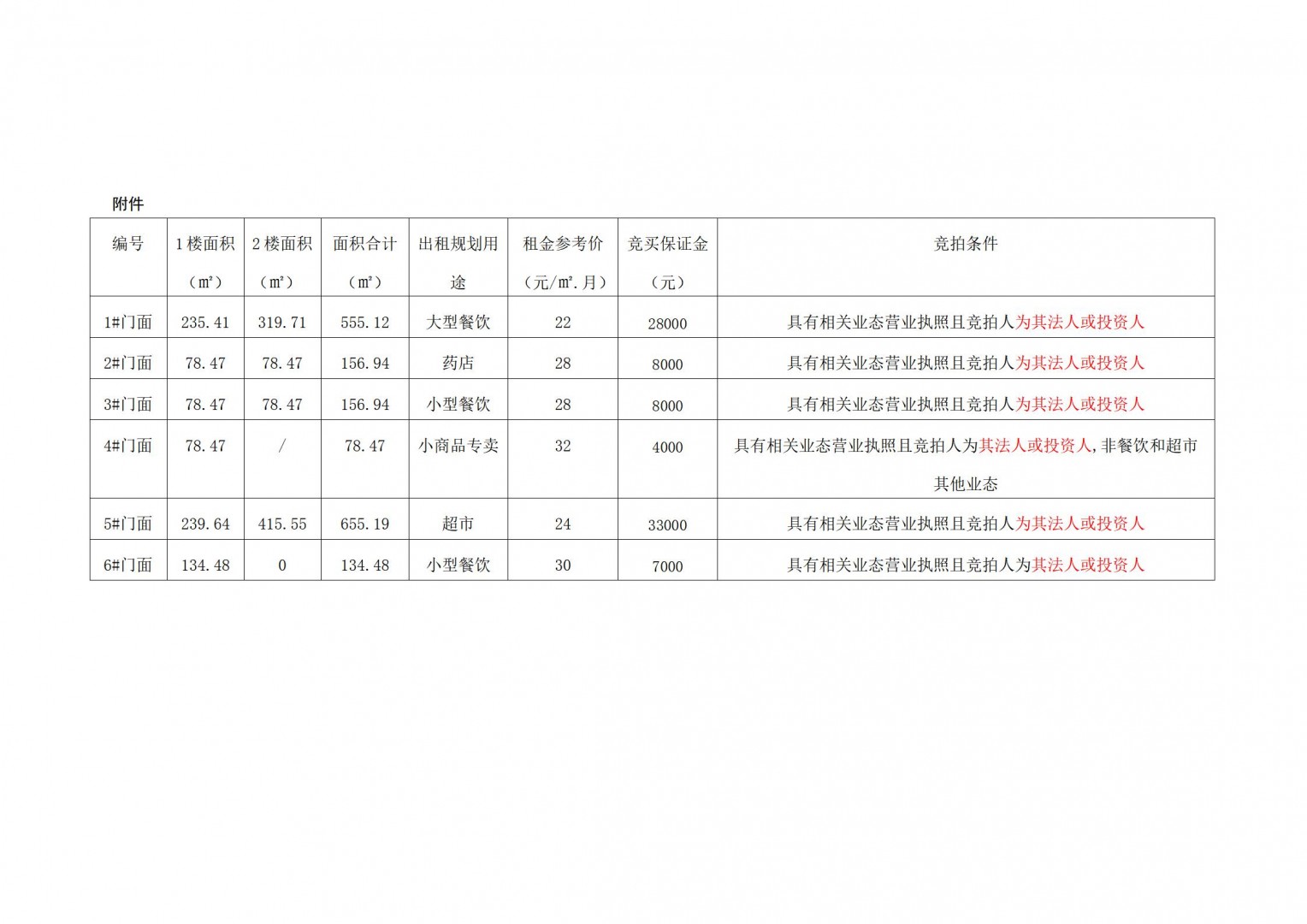 上述第9號門面房整體出租1至2樓,10#門面房只出租一樓。目前,上述門面房均處于空置的毛坯狀態(tài),現(xiàn)狀分別對外出租。相關競買事項詳見本公司拍賣資料中的《競買協(xié)議》樣本特別說明條款內(nèi)容,且標... |